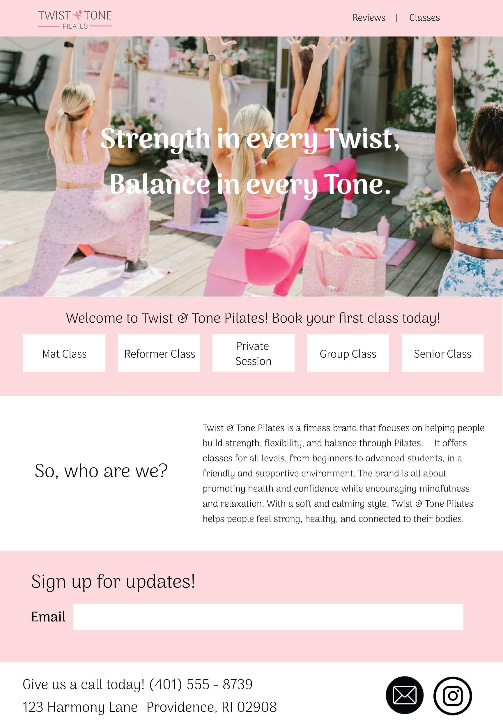 Pilates is about strength, balance and mindful movement. Twist & Tone Pilates was created to bring that spirit to life. The goal was to create a brand identity that feels welcoming, calm, and supportive to everyone.