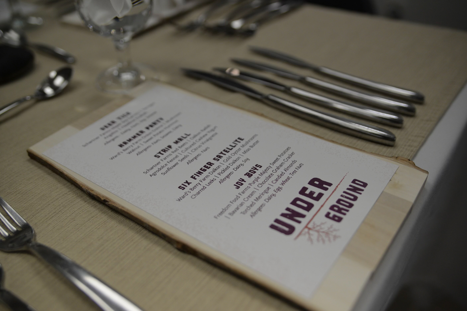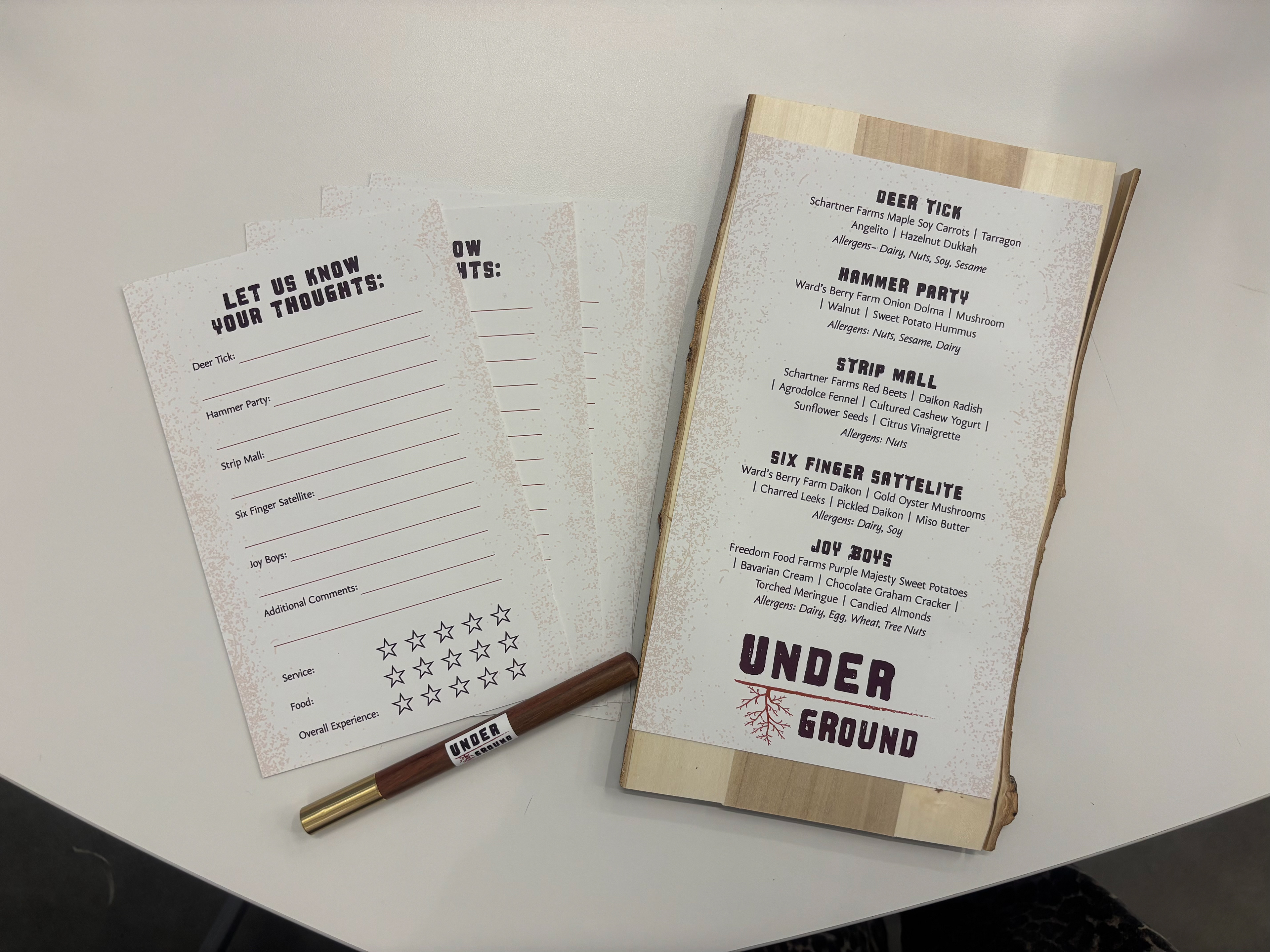 From there, I developed a cohesive brand system and designed the full menu. To elevate the presentation, we sourced and ordered natural wood slabs that paired with the menu’s theme and laser-engraved the final logo onto the back, creating a tactile and immersive experience for the guests.